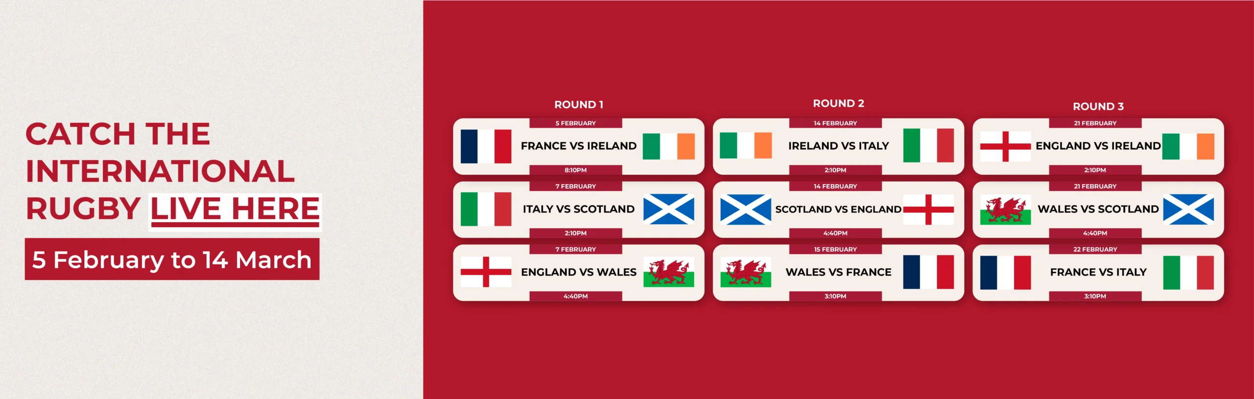 Coverage of Round 3 of the Six Nations from Stade Pierre Mauroy in Lille. France have been dominant against Italy in recent years, typically posting large winning margins with rapid try‑scoring depth, and last season’s clash reflected that gulf. Italy will be aiming to narrow that gap and spring an upset, but will need to flip that recent trend to trouble the defending champions in northern France.
